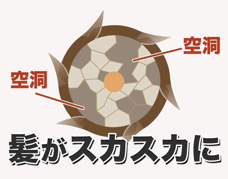 髪の内部がスカスカになり、
