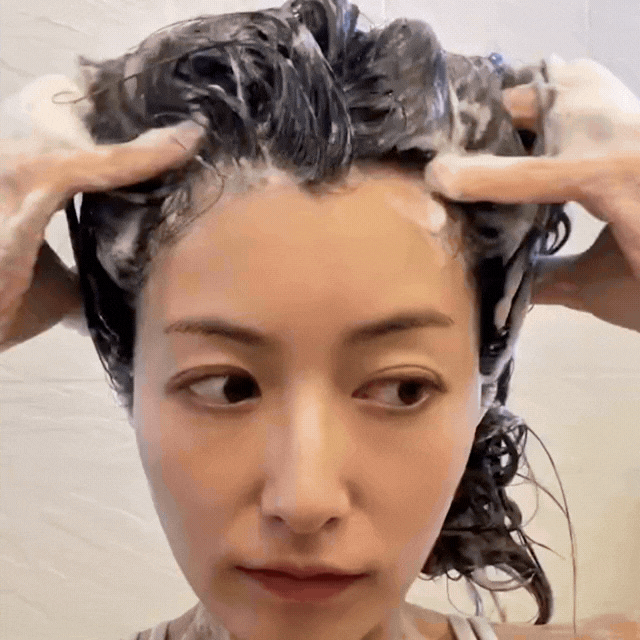 頭皮をマッサージしなら泡立てます!