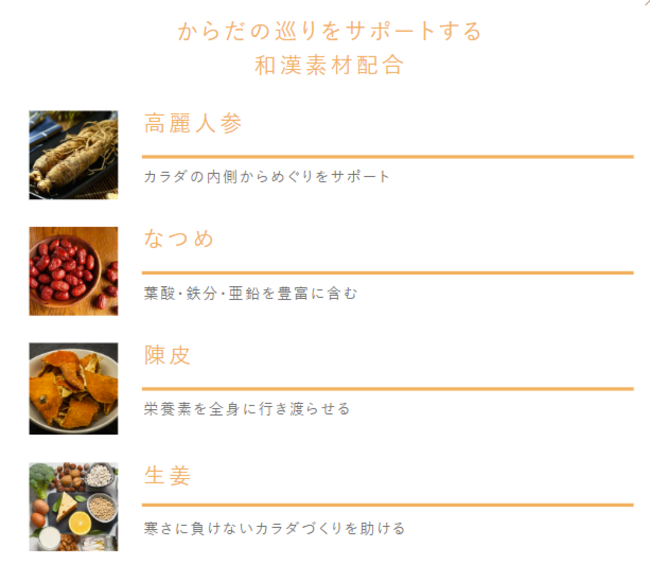 ※4つの和漢素材(高麗人参、なつめ、陳皮、生姜)による